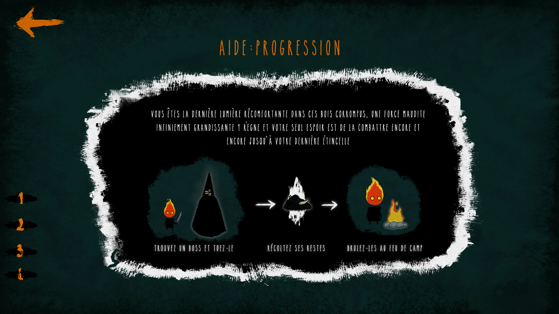 "Prenez le contrôle d'une petite flame courageuse dans une forêt en constante mutation. Survivez le plus longtemps possible afin de combattre les forces de plus en plus puissantes qui corrompent les bois." Voir le site web du jeu ici